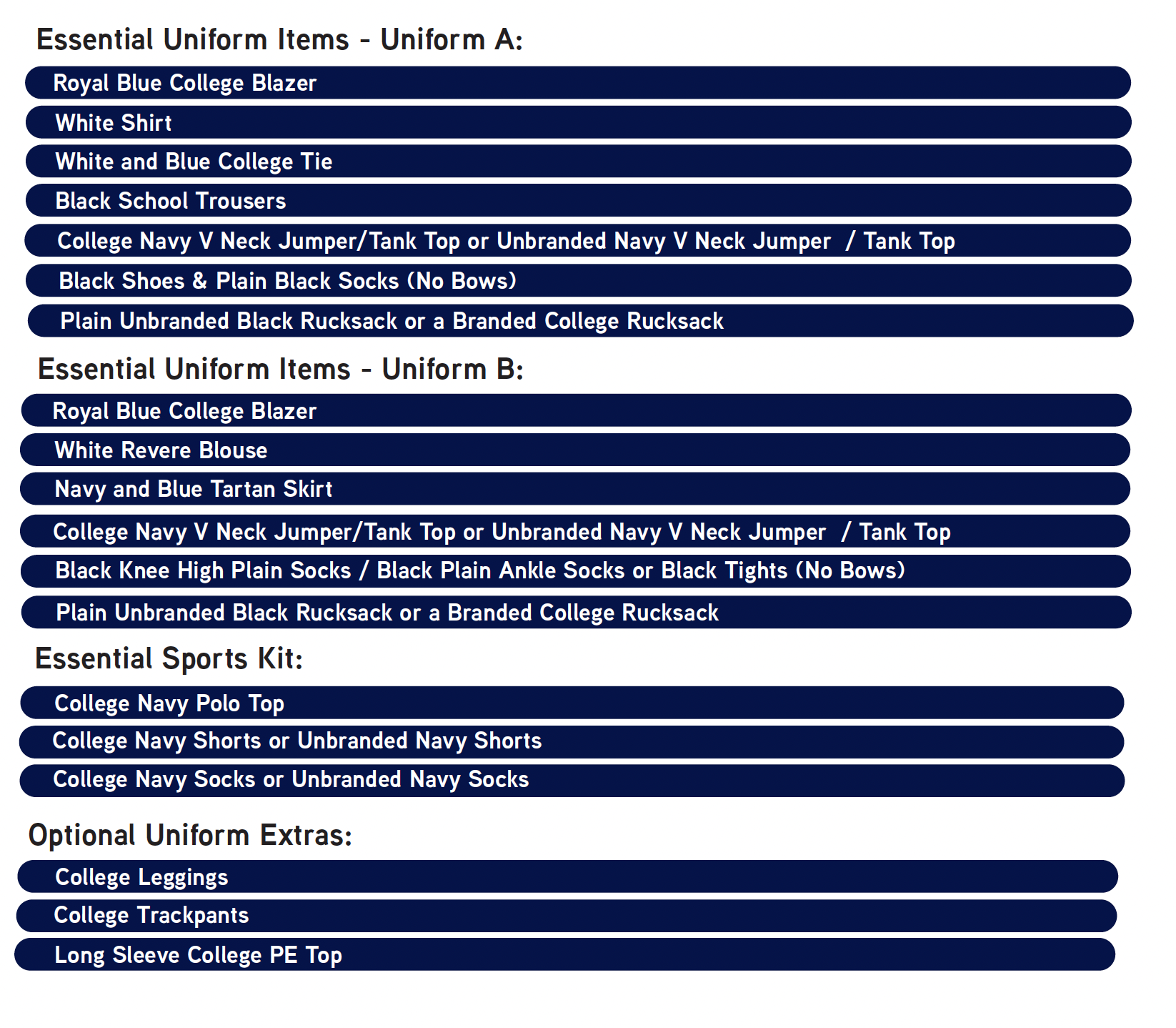 In the interest of health and safety, pupils will not be permitted to wear pump style footwear. Pumps, canvas style shoes, Converse, Vans and High Tops are not acceptable and must not be worn.